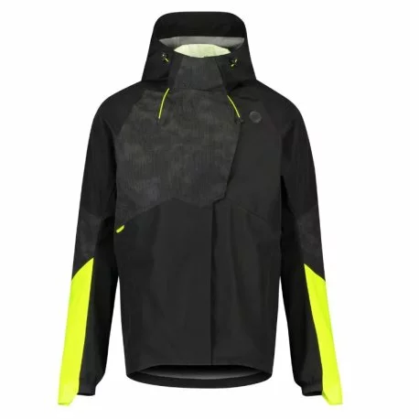 Detrás de la cremallera YKK en la parte delantera, un canalón evita que el agua de lluvia entre en la chaqueta.